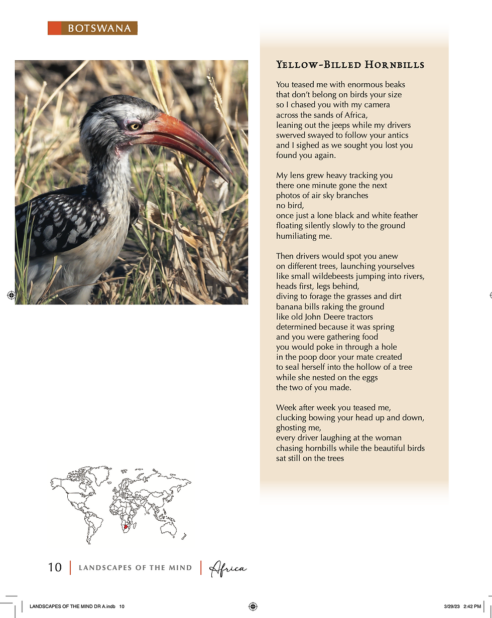 This is a sample Table of Contents for Landscapes of the Mind, which is currently being split into two volumes. Certain stories/essays/poems and photos from each chapter/region will be separated into the different volumes. What that means is that parts of Africa will be in both Volume 1 and Volume 2 and the same for each existing chapter. New material incorporating recent travel is being added to what are designed as 8.5" x 11" volumes.